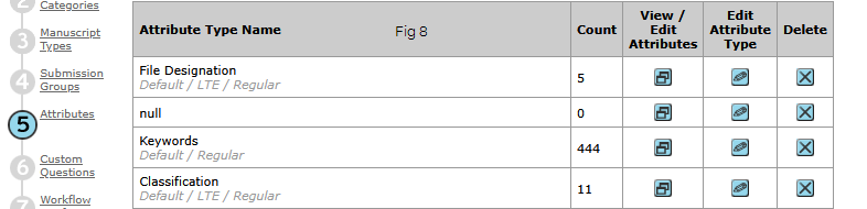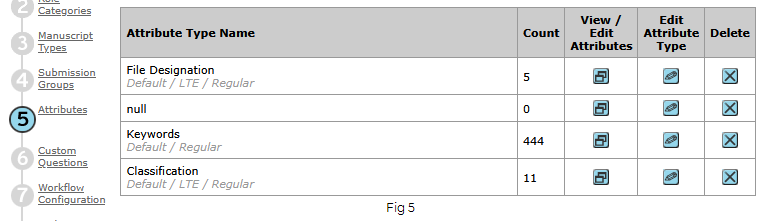 Click "Edit" at the top of the window to view or modify manuscript type settings. (Fig. 2)