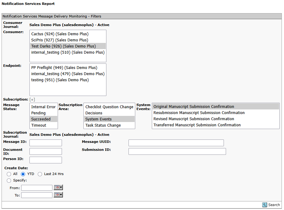 The Notification Services Report enables customers to search across all created messages. The report provides visibility into: