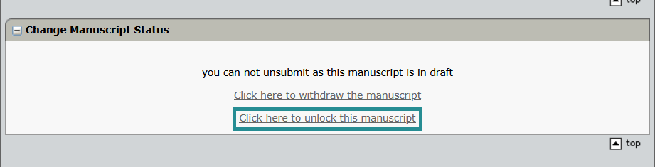 To ensure data integrity, ScholarOne sites configured with the unsubmit workflow as part of Submission Integration automatically lock manuscripts once they are unsubmitted. During this lock period:
